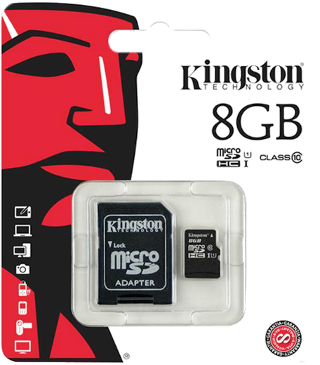 Карта памяти Kingston MicroSD (Class 10) 8gb + адаптер